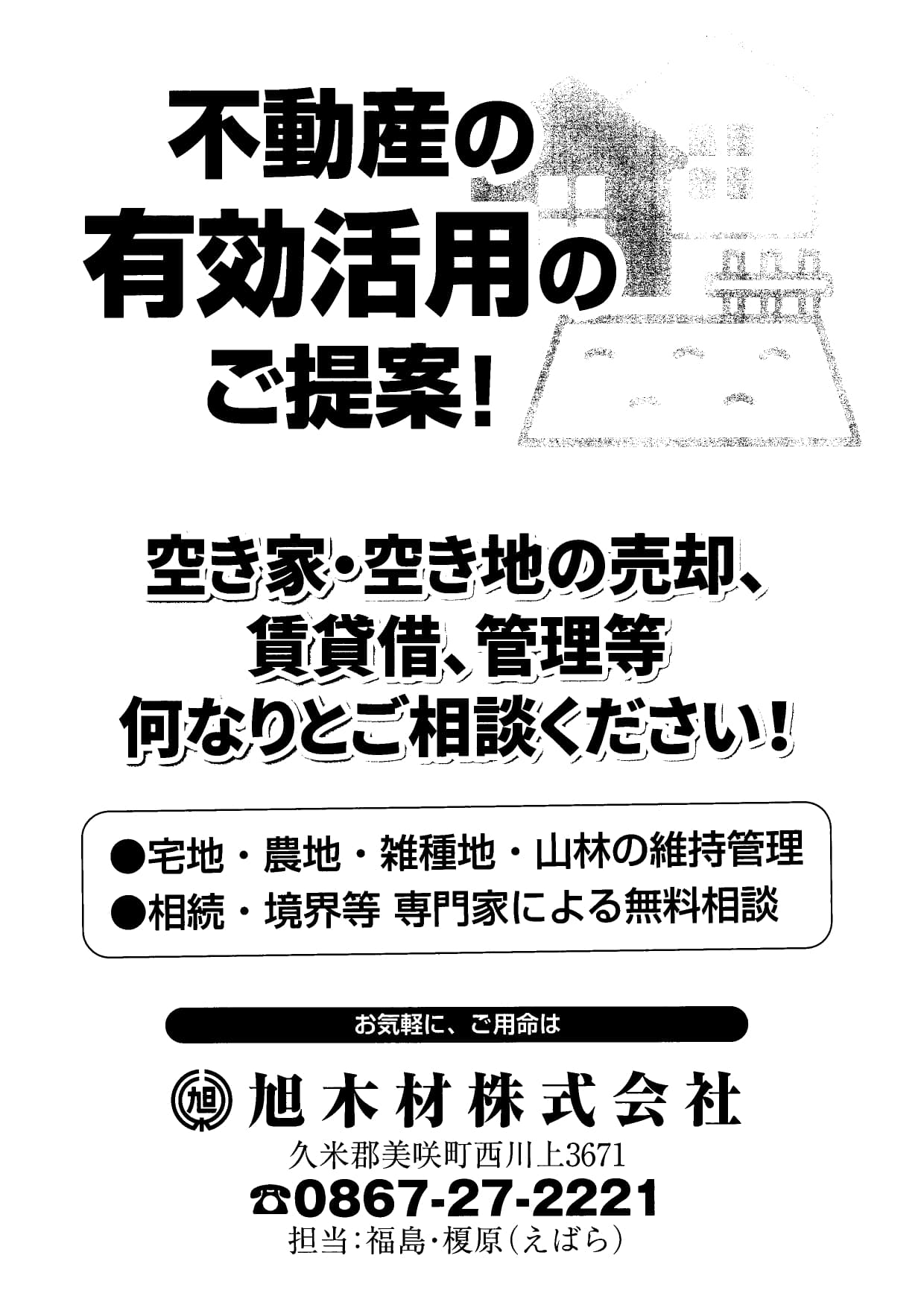 0867-27-2221 担当:福島・榎原(えばら)
