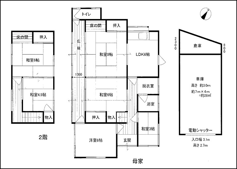 | 保険 | - | 間取 | 6DK(1階 和8/6/3 洋6 DK/2階 和6/4.5 和8/和6/和3/洋6/和6/和4.5) |