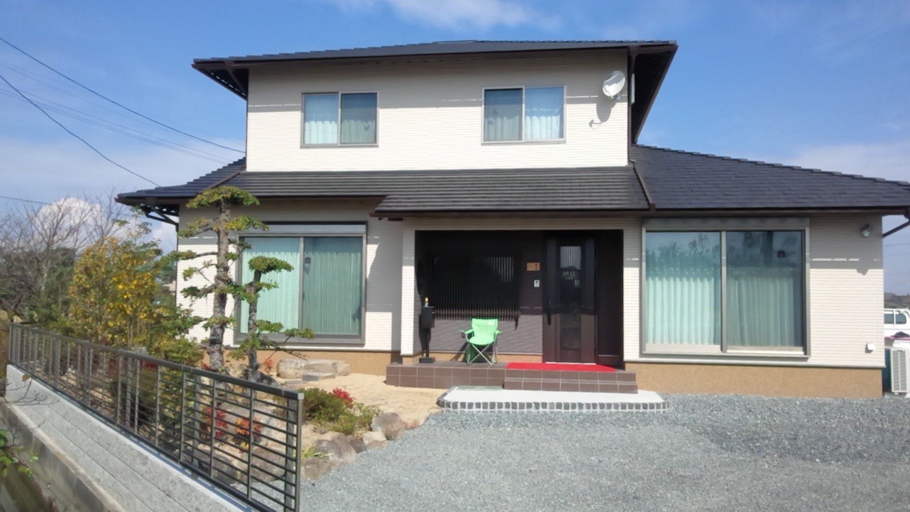 2021年6月完成。構造体は木造、県産美作桧4寸角を使用、通し柱8本入った骨太の造り、オール県産材の家、梁は地松、一部化粧として現わしにする。大引天井現わし、差し鴨居も地松化粧、玄関・土間~ホール~次の間の空間の演出は秀逸、今となっては非常にめずらしい古民家造り込みを真壁柱の現わしと上手く表現した空間となっています。耐震等級2も収得、基礎、構造体も安心の家です。外壁にも耐震、耐火、耐久性に非常に優れたパワーボードを採用しています。三世代住み継がれる伝統工法の良さを残した良い造りを目指しました。当社直営大工による卓越した技をぜひご覧ください。